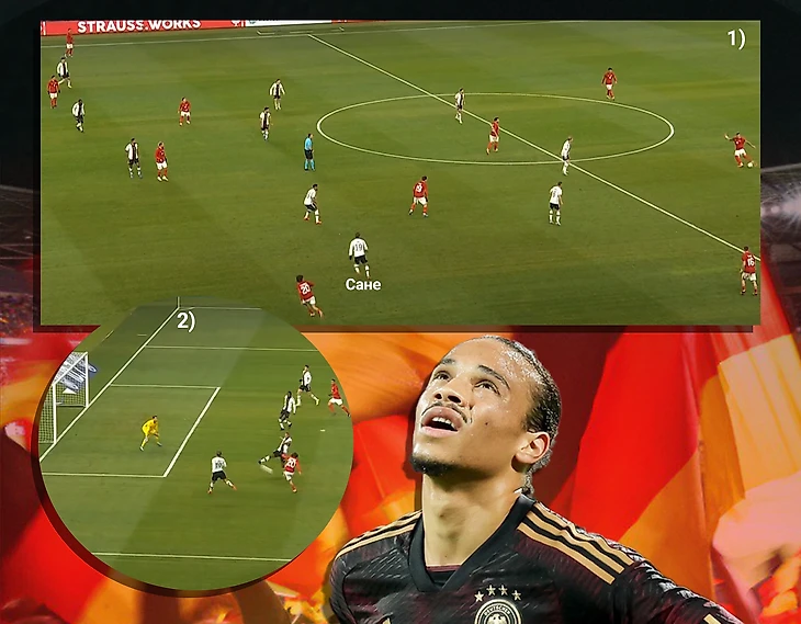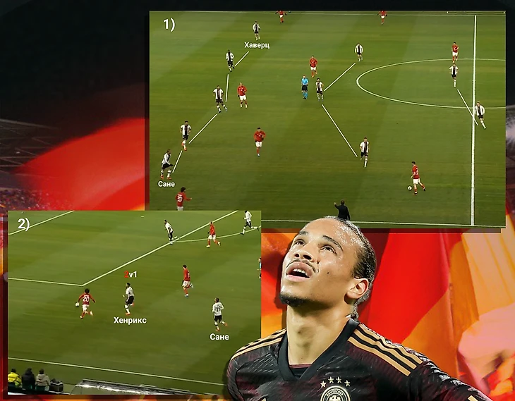 Проблемы у немцев возникали, там, где был профильный крайний защитник, но помощь в виде вингера Сане по видимому только мешала. Лерой часто вел себя пассивно в обороне, чем оставлял Хенрикса в трудных условиях против двух оппонентов: