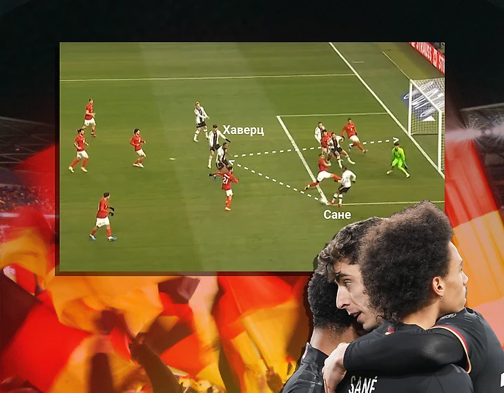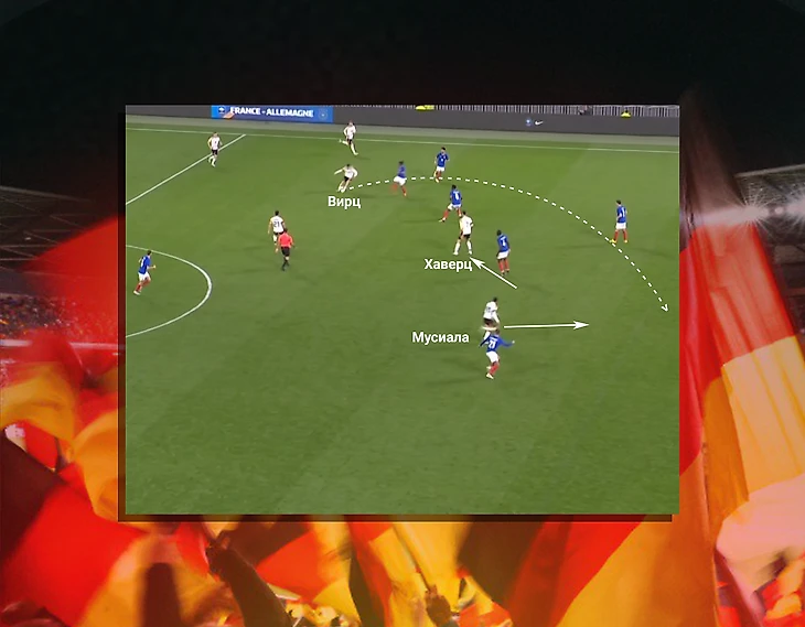 Такая позиция ТРЕХ десяток еще и заставляет соперников держать узкую формацию, что является зеленым светом для врывания крайних защитников сборной Германии.