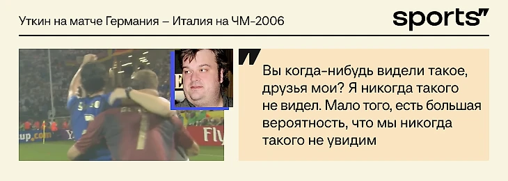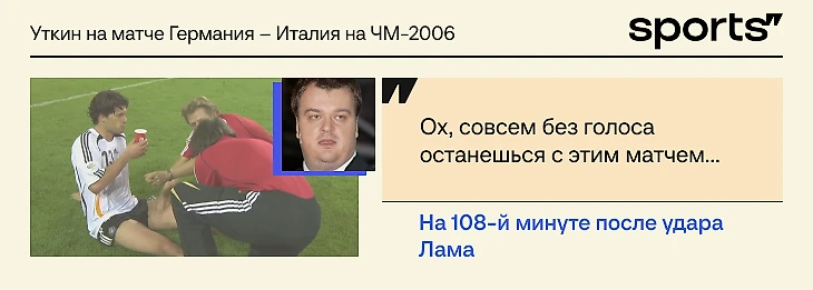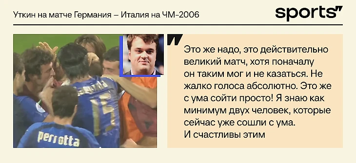 Да, чаще вспоминают игру Англия – Тринидад и Тобаго, она разошлась на мемы. Но даже сам Уткин считал ее творческих хулиганством. А вот полуфинал-2006 – по-настоящему большая работа, когда голос соответствовал большущему матчу.