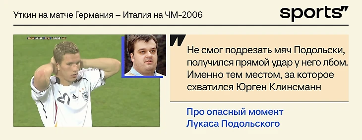«Подольски-Подольски… Какая возможность. Как вздохнул «Вестфален»… Не смог подрезать мяч Подольски, получился прямой удар у него лбом. Именно тем местом, за которое схватился Юрген Клинсманн»