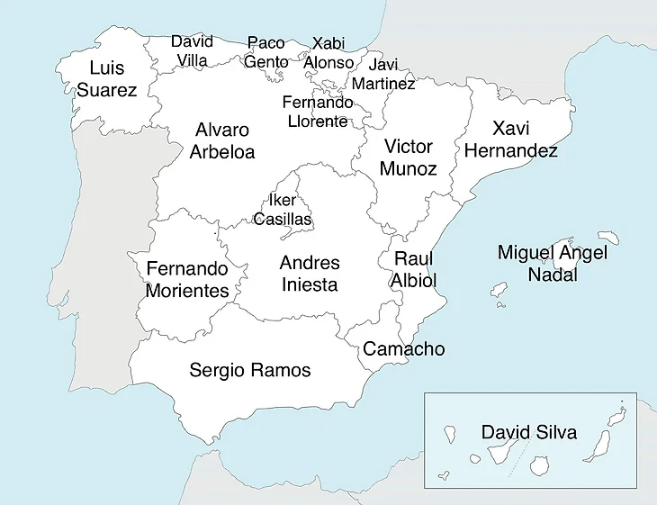 Мы выбрали несколько таких – по топ-сборным. Любопытно, например, и залипнуть в сами карты, и познакомиться с территориальным делением стран тоже. Конечно, в некоторых регионах гораздо больше одного суперзвездного игрока, выбор – личные предпочтения авторов картинок.