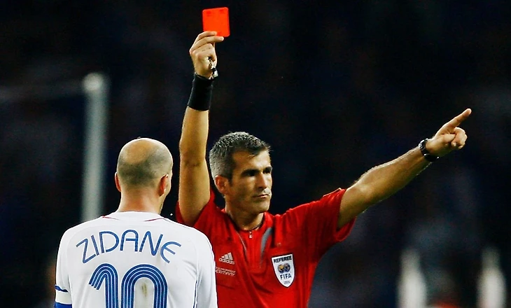 Главный арбитр может показать красную карточку за вторую желтую или напрямую. Прямым удалением наказываются самые грубые и жесткие фолы: подкат сзади, удар шипами в незащищенную область, удар рукой по лицу. К удалению может привести неспортивное поведение или фол последней надежды — лишение соперника явной возможности забить гол.