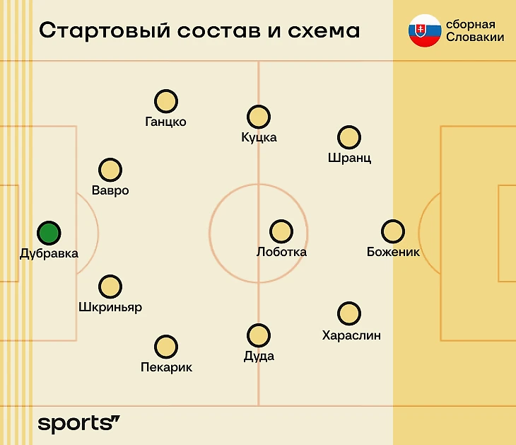 В воротах Дубравка, он уже много лет играет первого номера. Пара ЦЗ: Шкриньяр – Вавро. Защитник «ПСЖ» – самый дорогой словацкий игрок и капитан сборной, а Вавро играет в «Копенгагене», который пошумел в Лиге чемпионов. Крайние защитники – 37-летний Пекарик и часто отличающийся Ганцко.