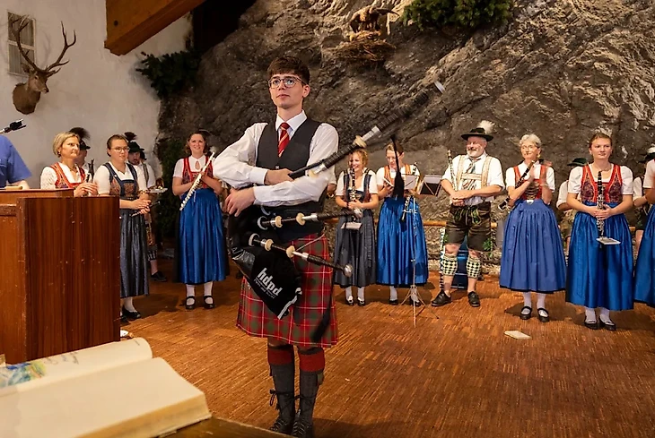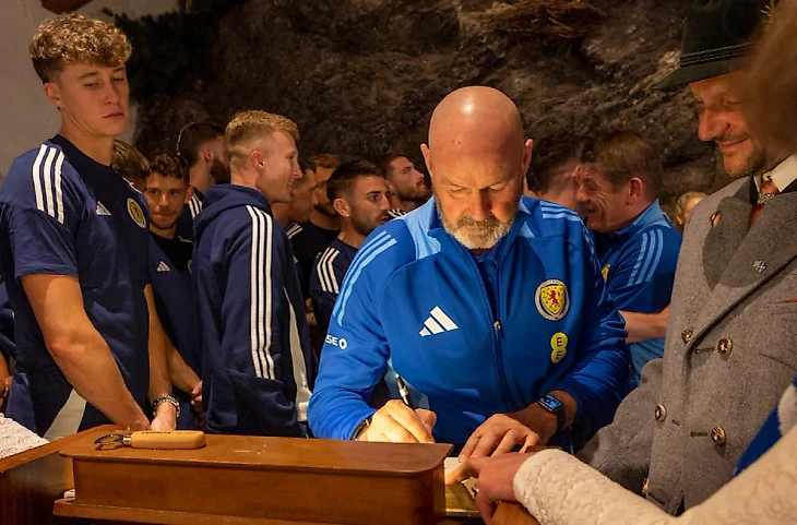 После приветственных речей мэра Гармиша и тренера сборной Шотландии гости смогли расписаться в золотой книге города и послушать серенаду местных музыкантов.