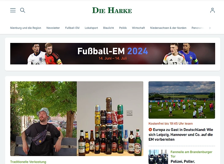 А вот газета с забавным названием «Die Harke» из городка Нинбург, который является городом-побратимом белорусского Витебска, название которой у нас можно перевести как «Грабли», выделила специальный раздел на сайте под грядущее событие, где можно ознакомиться не только со статьями местных журналистов, но и даже освежить в памяти участников групп, следить за турнирной сеткой и узнавать результаты параллельно идущих матчей, пока смотришь матч любимой сборной.