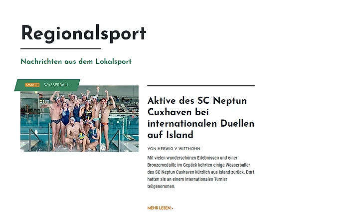 А вот издание «Сообщения Куксхафена» и вовсе забыло о чемпионате Европы, в разделе спорт можно ознакомиться со всеми спортивными событиями происходящими в городе и в земле Нижняя Саксония: от чемпионата пловцов до успехов юных картингистов, но вот чтобы почитать что-то от местных журналистов о чемпионате Европы, то придется воспользоваться поисковой строкой внутри сайта газеты.