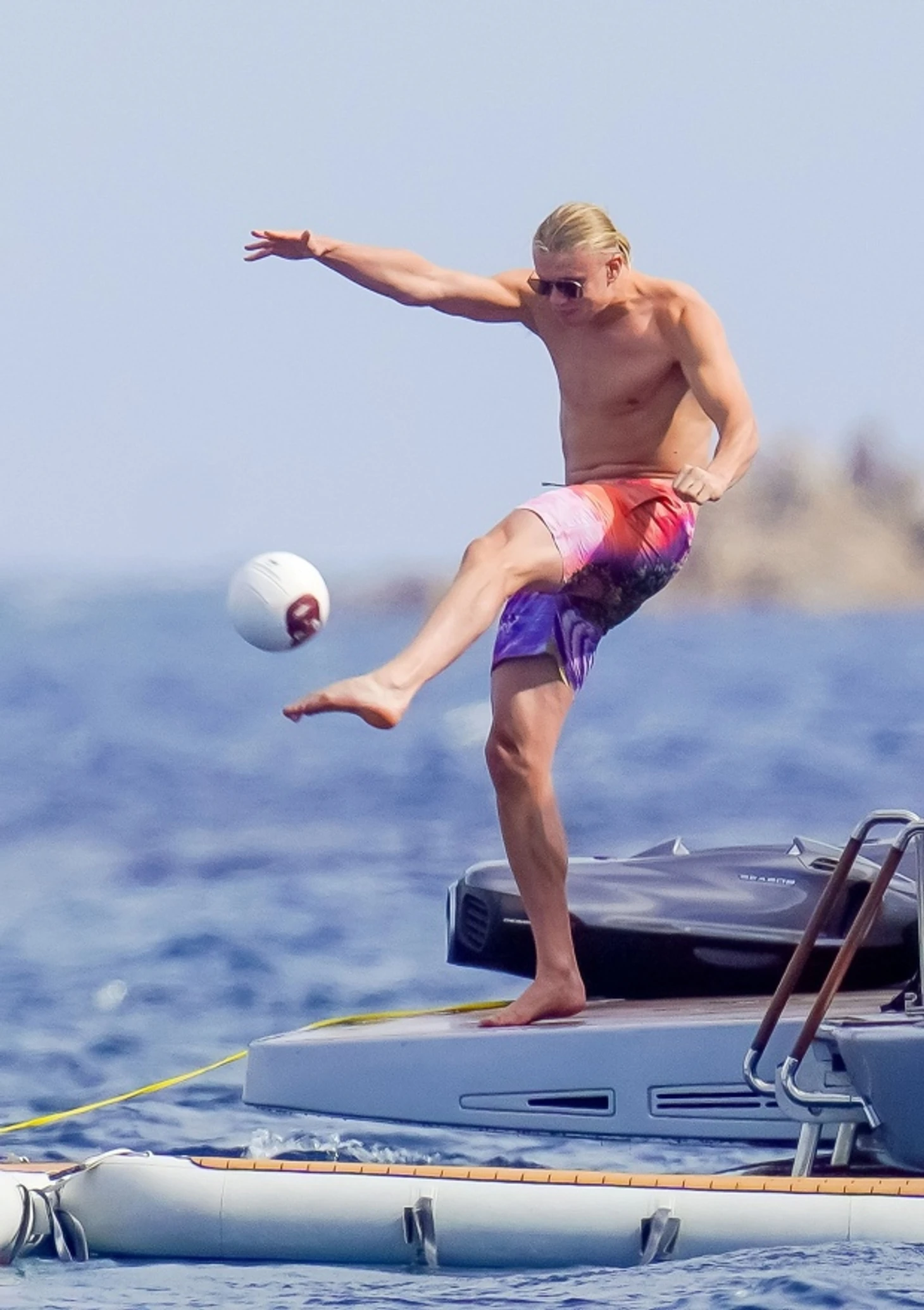 23-летний нападающий «Манчестер Сити» был замечен, с мячом на яхте во время отдыха в Каннах, где он отдыхает в компании друзей и отца.