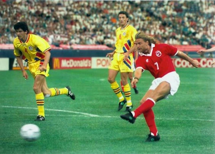 И снова ЧМ-1994. В квартете «А» встретились сборные США (хозяева чемпионата), Румынии, Швейцарии и Колумбии. Изначально фаворитом квартета называли Колумбию. Сборная уверенно прошла отборочный раунд, пропустив всего два мяча и отметившись в том числе гостевым разгромом Аргентины (5:0). Но на деле турнирный расклад оказался совсем другим. В своем первом матче на том турнире Колумбии предстояло сыграть с национальной командой Румынии. И неожиданно для многих румыны нанесли сопернику поражение. Голы Флорина Рэдучоу и Георге Хаджи, забитые на 15-й и 34-й минутах соответственно, стали предвестниками сенсации. На 43-й минуте Колумбия усилиями Адольфо Валенсии отыграла один мяч, но, как оказалось, вернуться в игру это не помогло. На 89-й минуте Рэдучоу оформил дубль, окончательно решив вопрос о победителе. С учетом ничьей в параллельном матче, Румыния уже после первого тура возглавила группу. И во втором туре ей предстояло сыграть с национальной командой Швейцарии.