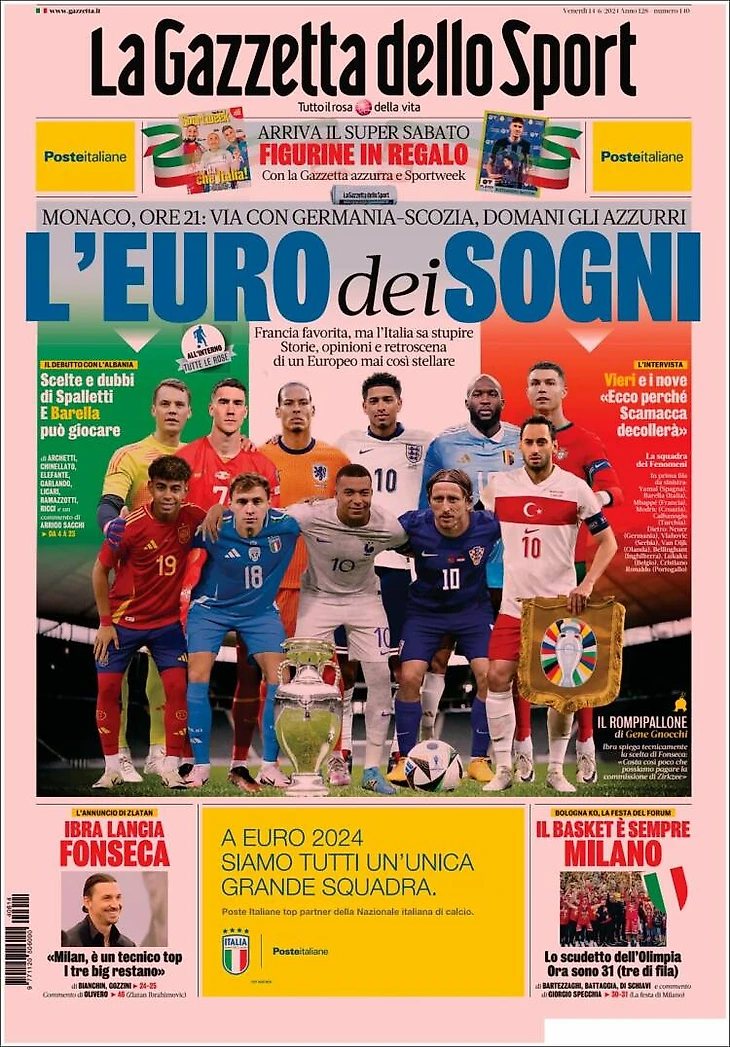 «Евро мечты», – говорит итальянская La Gazetta dello Sport, собрав на обложке команду звезд из разных команд.