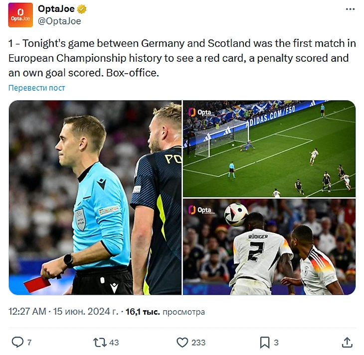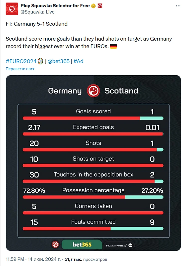 Ворвались на полной скорости. Матч открытия Евро-2024 Германия 5:1 Шотландия