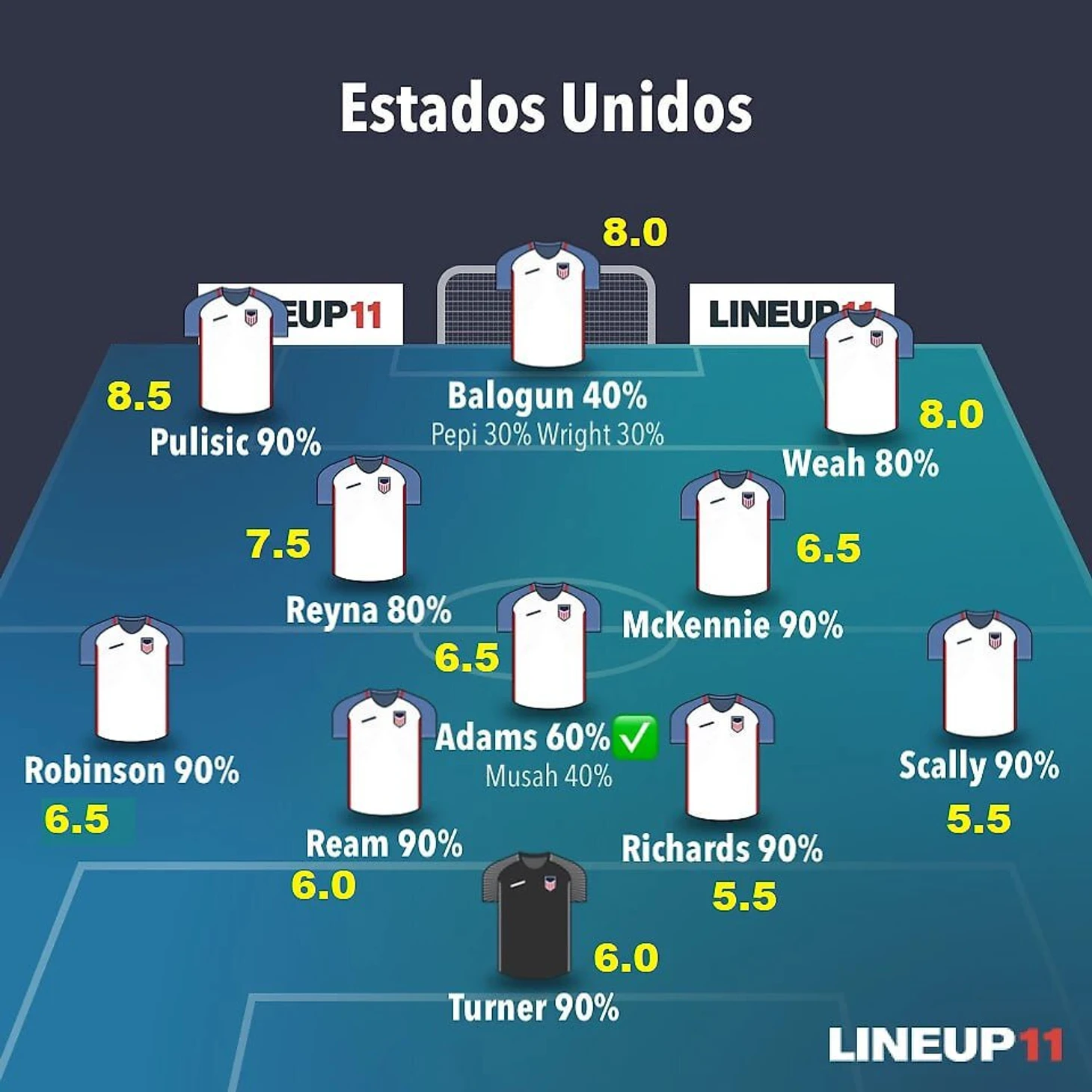 Хозяева турнира – победитель Лиги наций КОНКАКАФ. У США неплохой состав, но переоценивать его не стоит. Во-первых, в Золотом Кубке проиграли полуфинал Панаме. Во-вторых, вопросов по позициям по больше, чем на схеме от Alineacionesfantasy.