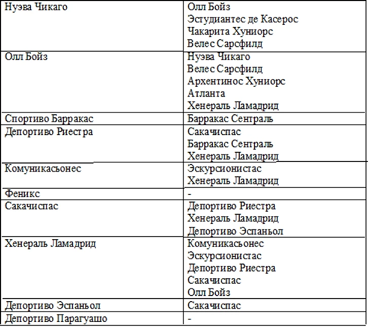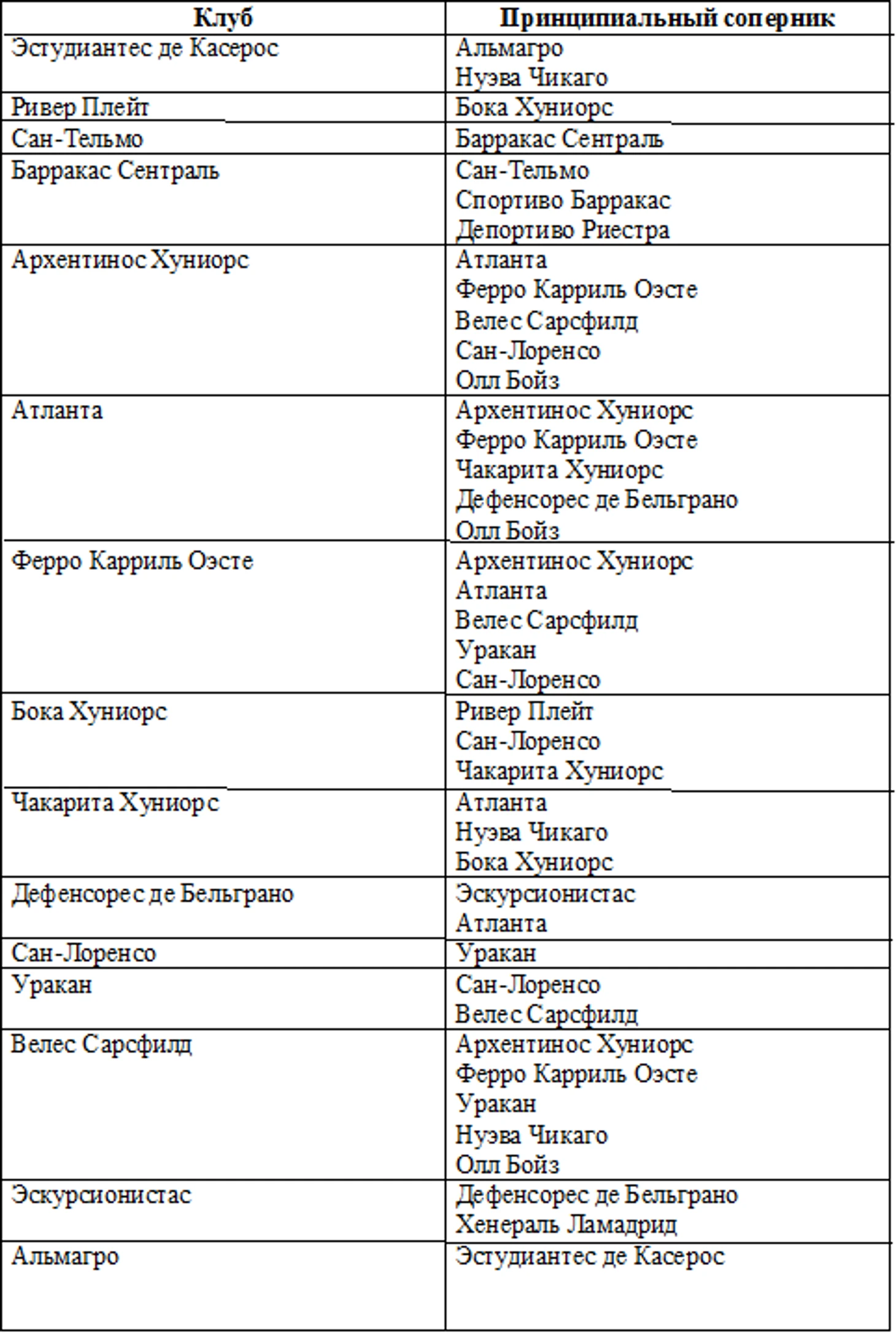 В таблице ниже приведены сводные данные по соперничеству между клубами.