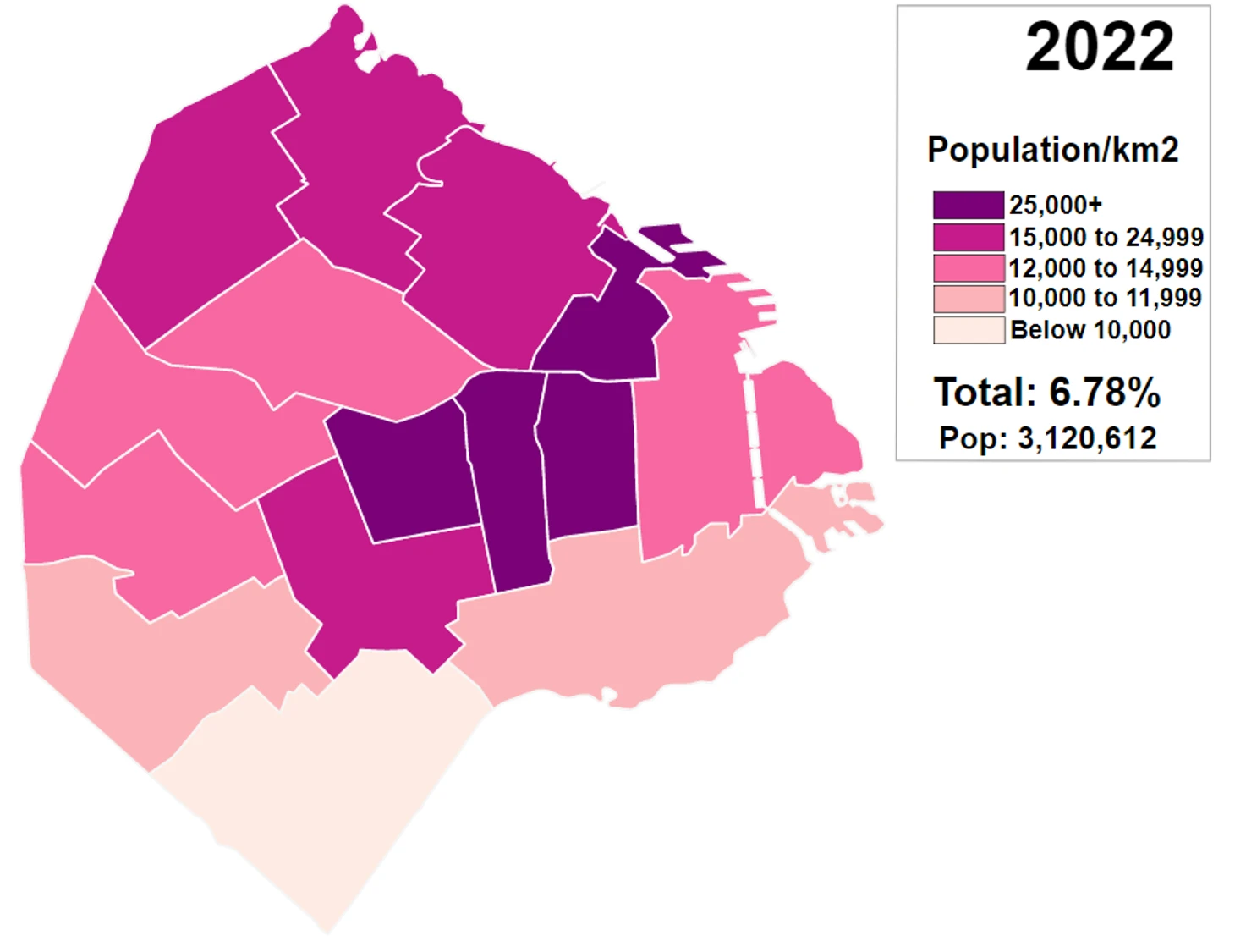 Теперь давайте посмотрим на плотность населения в Буэнос-Айресе.