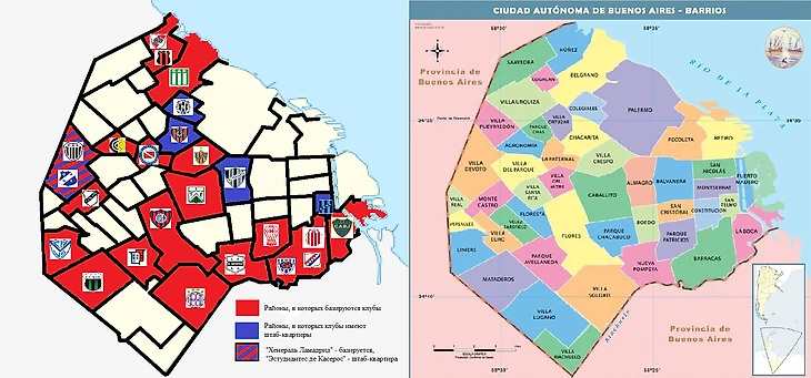 Самые густонаселенные районы (кроме Кабашито) не имеют профессиональных футбольных клубов. Самый полулярный футбольный клуб – «Бока Хуниорс» располагается в далеко не самом населенном районе (как и Барракас со своими тремя клубами), что наталкивает на вывод, что «желто-синие» имеют основную поддержку не за счет местного населения, а за счет жителей столицы в целом. А вот их главный соперник «Ривер», наоборот живет в весьма густонаселенном районе и соседствует с аналогичными густонаселенными районами.