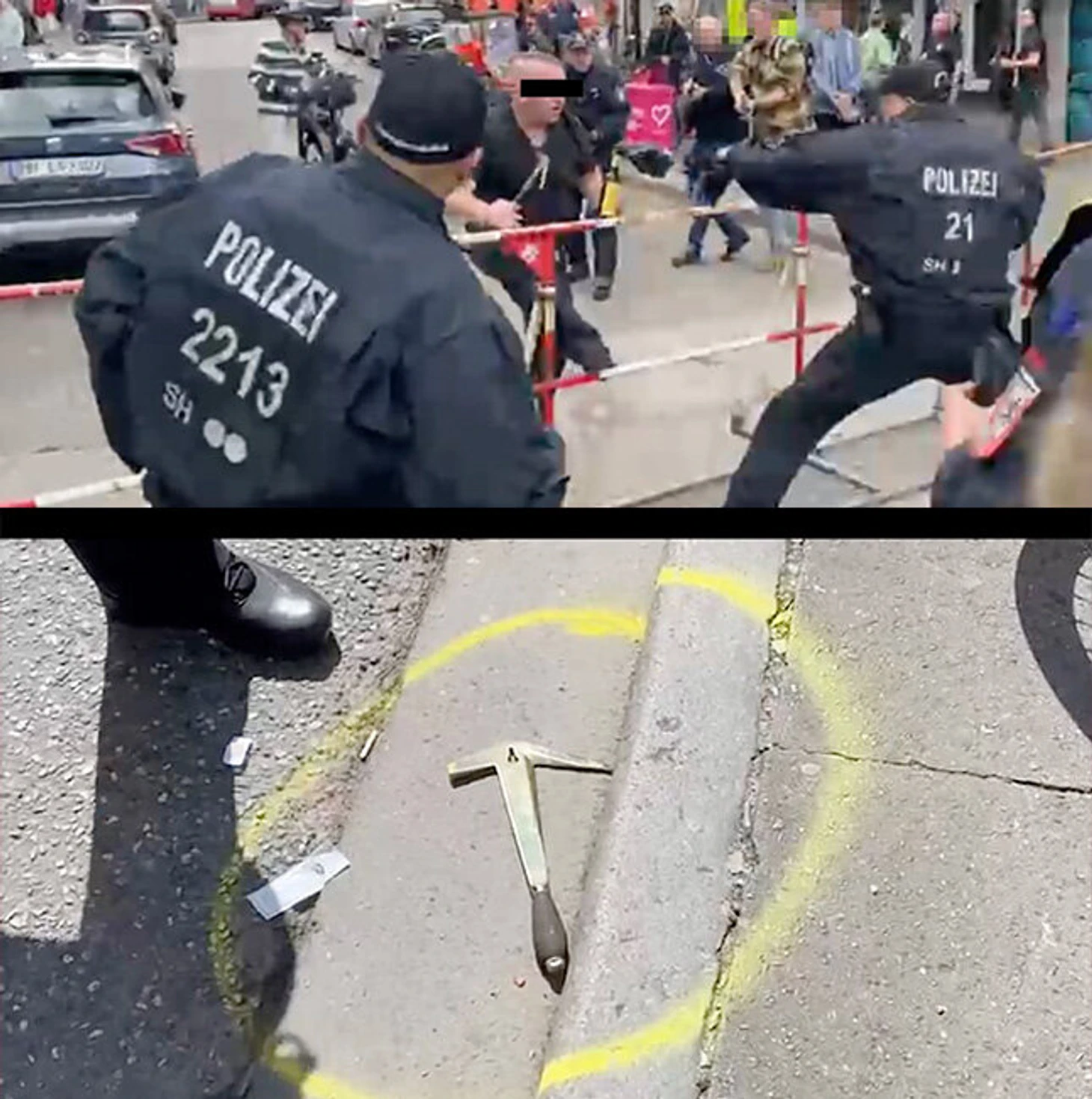 Bild пишет, что происшествие случилось в 12:30 на улице Рипербан – это место скопления увеселительных заведений, центр местного квартала красных фонарей. Мужчина вышел из бара с небольшой киркой (возможно, с кровельным молотком) и бутылкой с зажигательной смесью. Он стал угрожать полицейским.