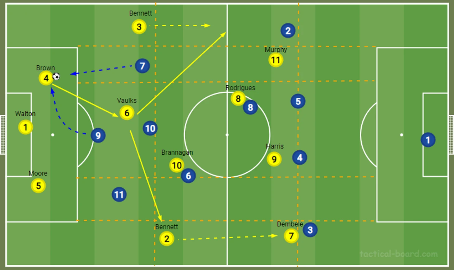 Когда дело доходит до плоской смены системы, мы можем увидеть 4-3-3 с Волксом, сидящим глубже за двумя более продвинутыми игроками, или 4-2-3-1 с ним и Брэннаганом позади атакующего полузащитника. В дополнение к этому, Кэму может быть предоставлена позиция, которую недавно занимали Родригес и Гудрхэм, чтобы обеспечить больший баланс как впереди, так и сзади.
