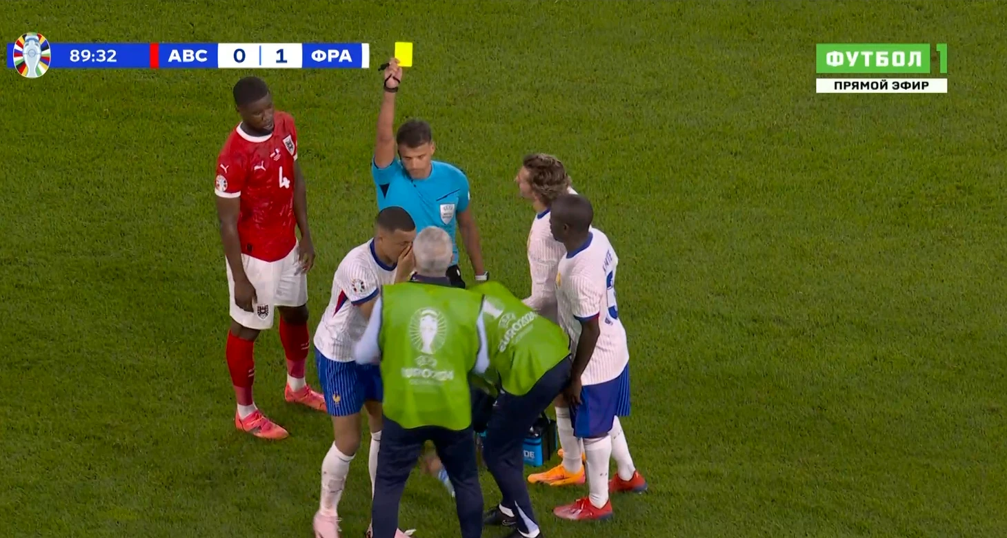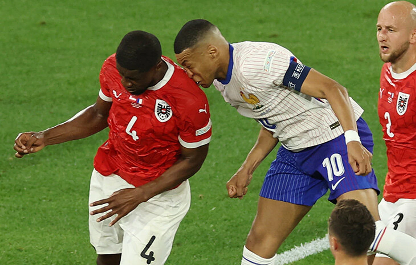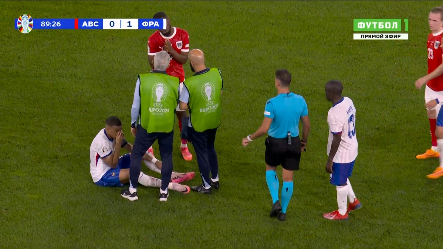 Килиану Мбаппе было очень больно в конце матча первого тура Евро-2024 против Австрии (1:0). В верховой борьбе врезался в Кевина Дансо и разбил нос.