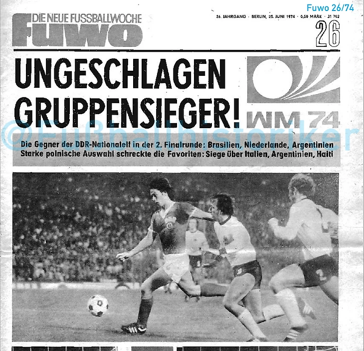 Казалось бы, что далее соперники сборной ГДР должны были попасться относительно легкие. Но регламент был построен таким образом, что предусматривался 2-ой групповой этап. В одной группе были команды-победители 1-го этапа, в другой – команды, занявшие 2-ые места. ГДР получила в соперники голландцев, бразильцев и аргентинцев; по сути «группу смерти». ФРГ достались 2 страны из соцлагеря – Польша и Югославия, а 3-им соперником стали шведы.