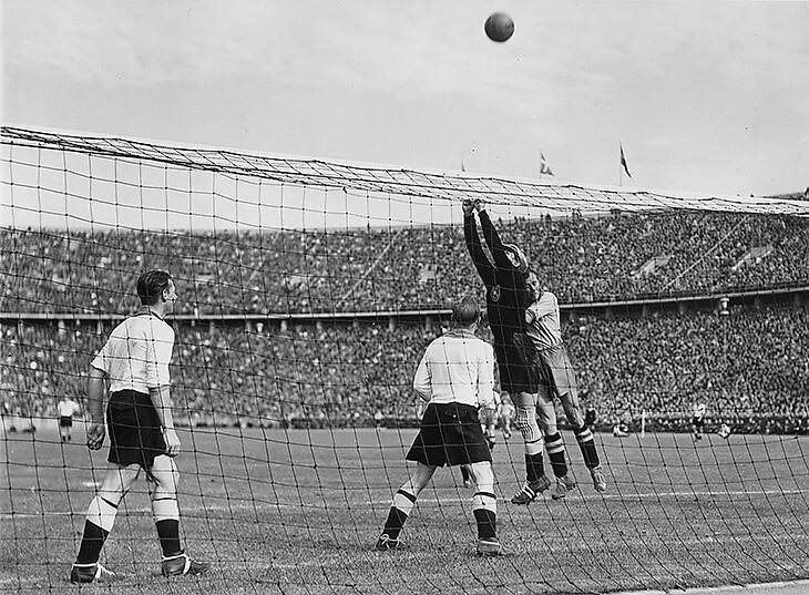 1942 год – переломный. Сначала Германия проиграла домашний матч Швеции, и министр пропаганды Йозеф Геббельс запретил сборной игры на территории страны, чтобы не подрывать моральных дух нации из-за невозможности гарантировать победу. А уже в ноябре Германия прекратила все матчи, когда советские войска окружили немцев под Сталинградом.