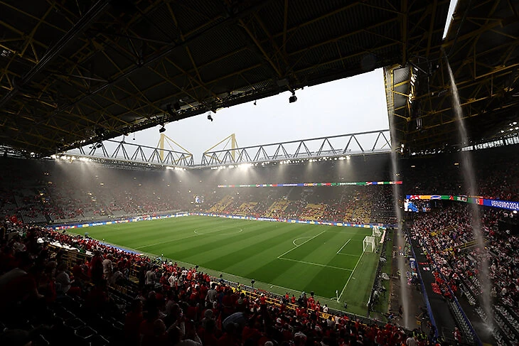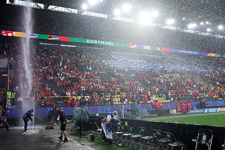 Сборная Грузии готовилась к первому в истории матчу Евро в аномальных условиях. Стадион «Боруссии» буквально заливало, а он не выдерживал.