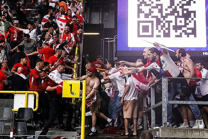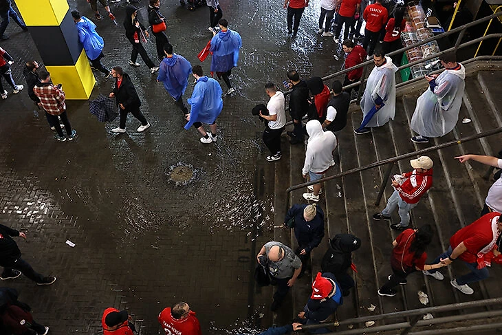Фанаты вот так, кхм, развлекались. Дрались, вероятно, не за место под солнцем, а за место под крышей, где не капает.