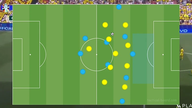 Видеоформат материала здесь. Что случилось с Украиной в матче с Румынией? С самого начала они столкнулись с организованным защитным блоком 4-5-1, причем этот блок не просто стоял, а выжимал по передаче соперника, не давая спокойно владеть мячом.