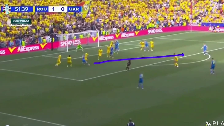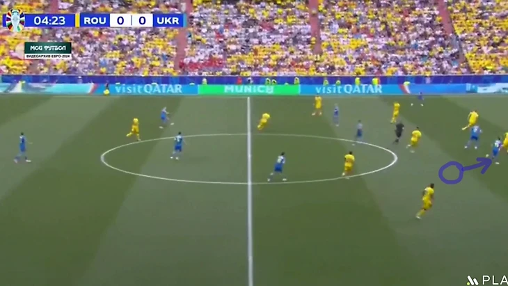 И вот еще одна попытка уже на быстроногого Мудрика, и вот если бы Украина хотя бы раз наказала румын, то дальше было бы легче.