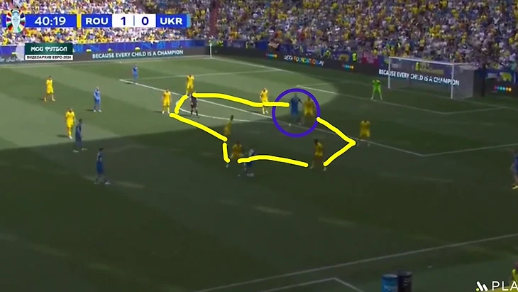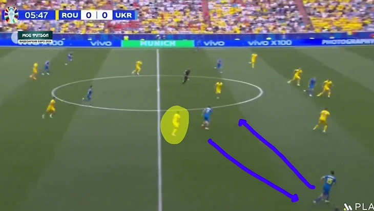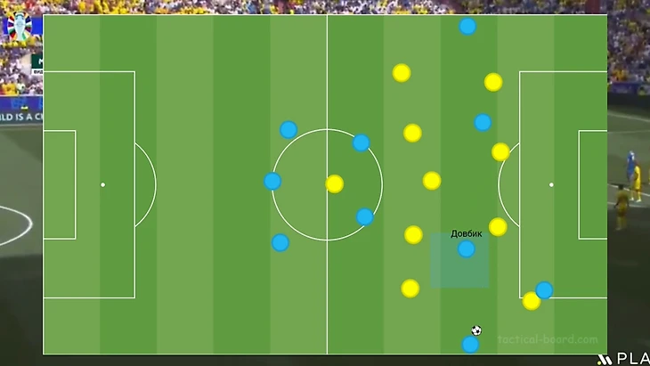 На этом этапе украинцы сделали все правильно, они начали играть за спину, в зону за спиной, причем тот же Довбик круто открывается.