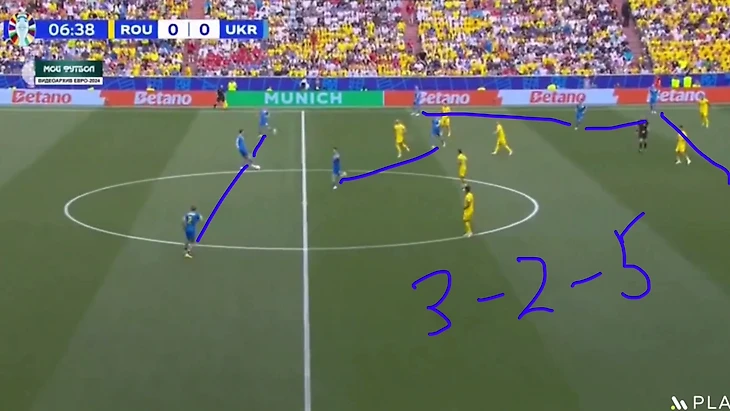 Но все равно, результатом этих решений было то, что Румыния откатилась назад от греха подальше и теперь Украине предстояло взломать это все мероприятие. По расстановке все топ, современные 3-2-5, единственное, как по мне, Зинченко лучше в центр поставить, дальше объясню почему. Сейчас не об этом.