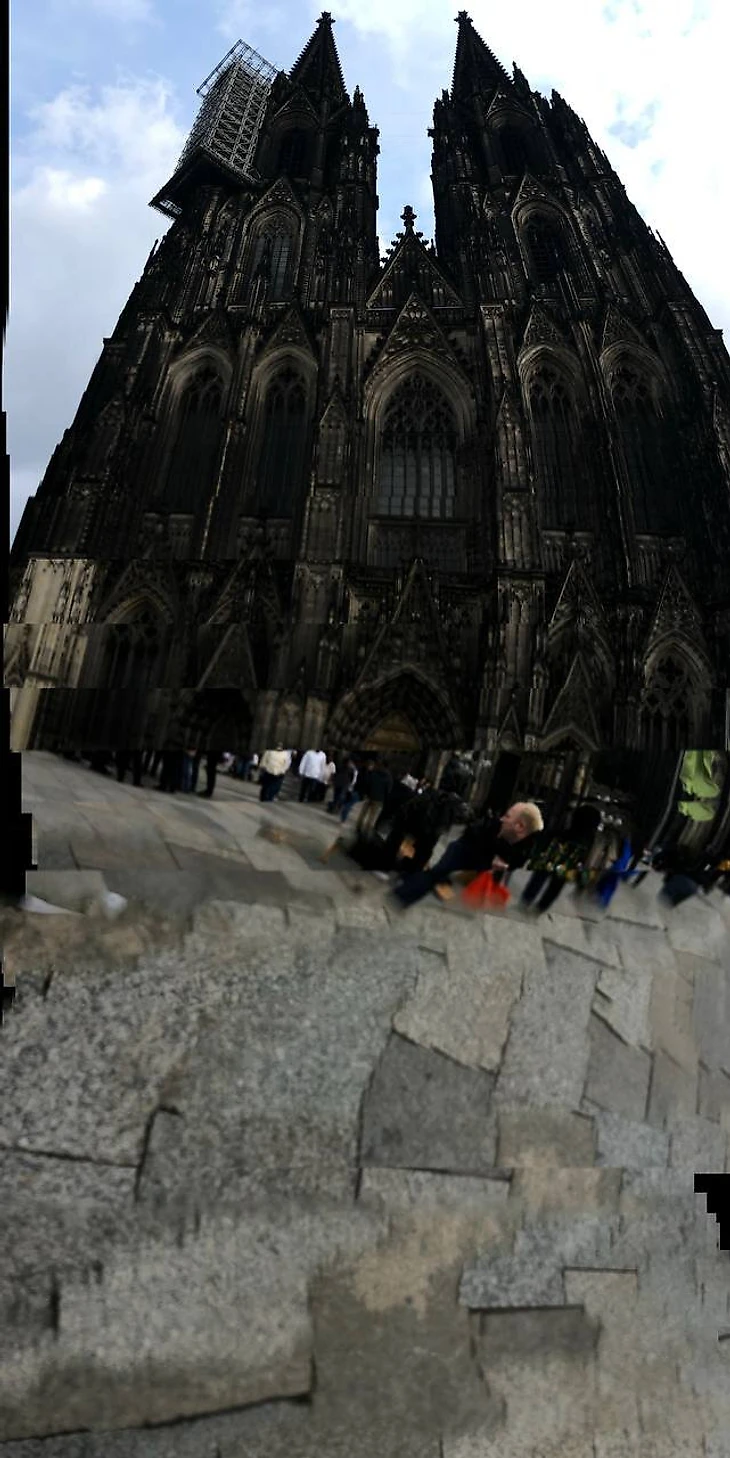 До собора очень легко добраться. Выходишь из вокзала – и он сразу тебя встречает, как строгий батя. Охотно верю, что это самая популярная достопримечательность Германии и ее посещают шесть миллионов человек в год. Потому что людей было очень-очень-очень много. Не только туристов, еще бродяг и попрошаек. Тогда полиция никак их не разгоняла.