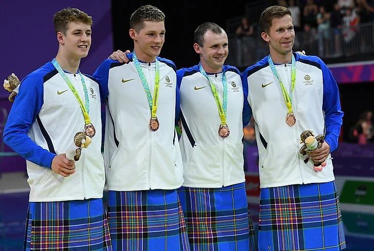 Четверка шотландских пловцов как-то вышла так на эстафету.