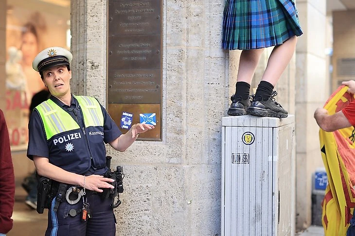 В Германии тартановый наплыв – минимум 100 тысяч шотландцев съехались в Мюнхен на матч открытия. И пока мужчины в клетчатых юбках (простите!) осушали немецкие пабы, представитель шотландской сборной сидел в килте рядом с боссами ФИФА и УЕФА.