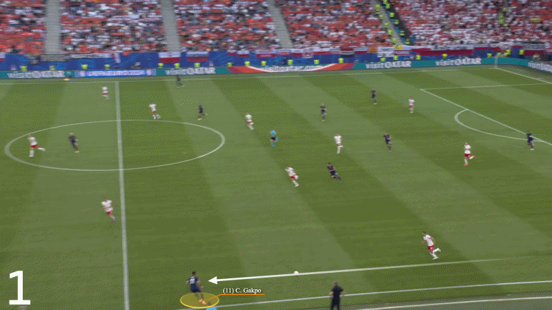 На первой же минуте Гакпо выполнил передачу на дальнюю штангу. Он оттеснил защитника, прорвался мимо него и заставил Войцеха Щесны делать сейв на ближней штанге.