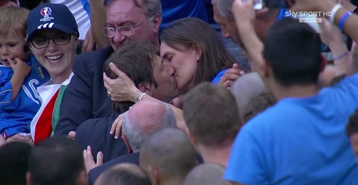 Факт о матче: после победы Антонио Конте бросился к трибунам и страстно поцеловал супругу – Элизабетту Мускарелло.