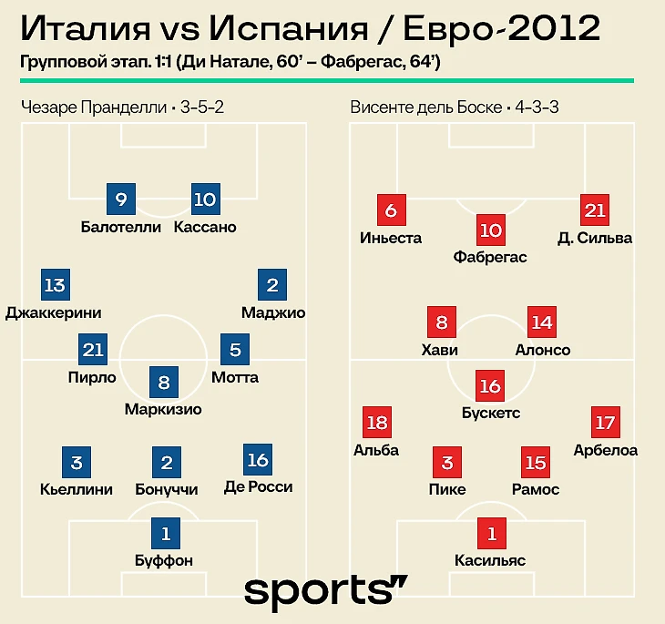 Факт о турнире: гол Ди Натале – единственный пропущенный испанцев на турнире. После этого Касильяс не пропускал 509 минут (два матча группового этапа, четвертьфинал, 120-минутный полуфинал и финал).
