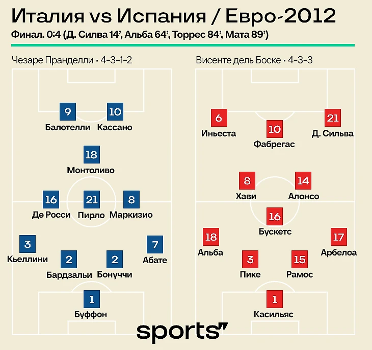 Италия против Испании – классика Евро. Команды встречаются вот уже пять турниров подряд – посмотрим, как менялись поколения, тренеры, схемы и лидеры команд.