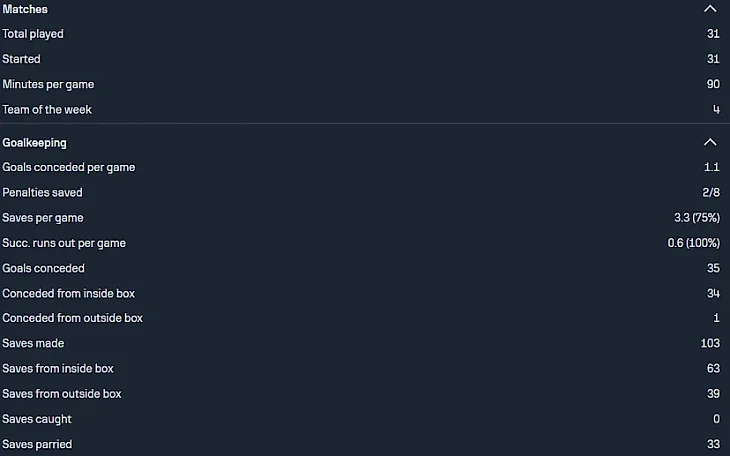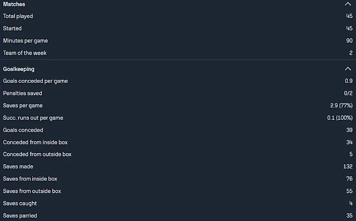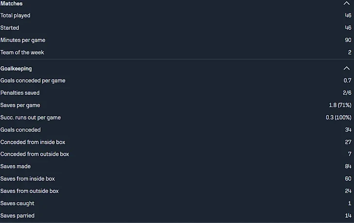 Одной из главных сильных сторон являются его рефлексы: за последний полный сезон он записал на свой счет 22 сухих матча в 46 играх, почти по одной в каждой второй игре, и это фантастика. Очевидно, что Чемпионшип — это явный шаг вперед, но я думаю, что он все равно добился бы хороших результатов в сезоне 23/24, если бы он был основным вратарем перед Гладким. Его пас на дальнюю дистанцию не самый лучший, но он довольно хорош на коротких расстояниях, что будет важно, если Оксфорд пожелает чаще разыгрывать сзади. Его навыки полета в воздухе великолепны, его рост составляет 196 см, что является главным фактором в этом. Его предыдущий опыт в Чемпионшипе станет большим бонусом для Оксфорда, который, вероятно, будет стремиться нанять игроков, которые раньше часто играли в этом дивизионе.