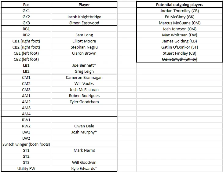 Это то, что, по моему мнению, нужно Оксфорду летом, с потенциальными 13 новичками, если вы хотите привлечь баланс опыта, молодежи и либо игроков уже проверенных в Чемпионшипе, либо тех, кто произвел впечатление в более низких дивизионах. Для каждой позиции будут подобраны 3-4 игрока, которые могли бы быть полезны Оксфорду в краткосрочной, среднесрочной или долгосрочной перспективах.