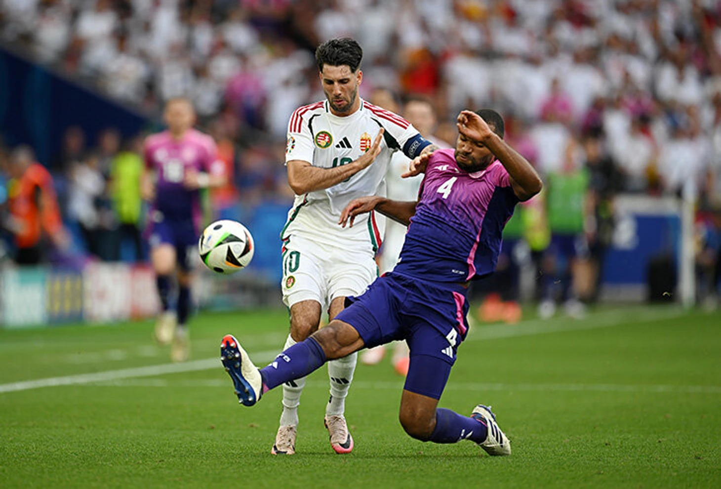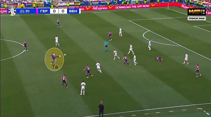 В отличие от Шотландии, Венгрия выбегала в контратаки. Обычно по флангам, и это объяснимо: немецкие крайние защитники Йозуа Киммих и Макси Миттельштедт очень высоко поднимаются при атаках, при потерях края Германии уязвимы.
