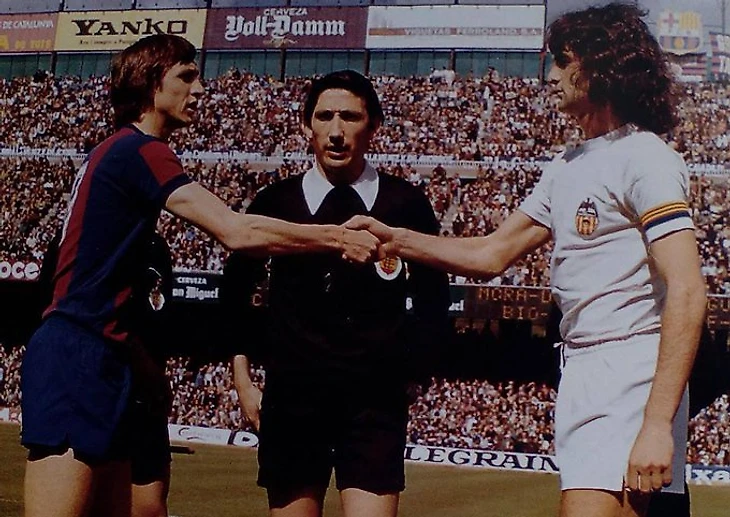 Знаменитое «Estrella Damm» – cамое популярное пиво группы. Мягкий светлый лагер, более легкий в сравнении с классическими немецкими сортами, адаптирован под жаркий испанский климат. «Estrella» в переводе с испанского – «звезда», и неудивительно, что на протяжении десятилетий бренд является партнером главной «звезды» Каталонии – футбольной «Барселоны». Листая ретро-фото успехов команды разных эпох – от Марадоны и Стоичкова до Рональдиньо и Месси – без труда разглядишь желтую звездочку на красном фоне. А, к примеру, на фото ниже трехкратный обладатель «Золотого мяча» Йохан Кройф и чемпион мира Марио Кемпес приветствуют друг друга на фоне плаката «Voll Damm» – крепкого пива группы.