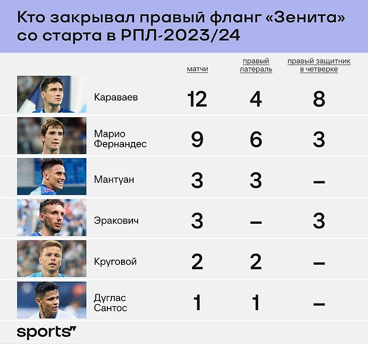 Трудности на правом фланге обороны возникали еще осенью 2023-го – из-за травм Марио Фернандеса и Вячеслава Караваева там выходил центральный защитник Страхиня Эракович. В двух матчах роль правого латераля отдавали левоногому Даниле Круговому – и вряд ли этот эксперимент признали успешным.