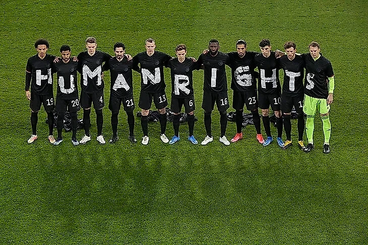 На основных комплектах от Hummel почти не было видно логотипов, третью форму на ЧМ вообще сделали траурно-черной, а четвертую (ее запретила ФИФА) – с надписью «Права человека для всех».