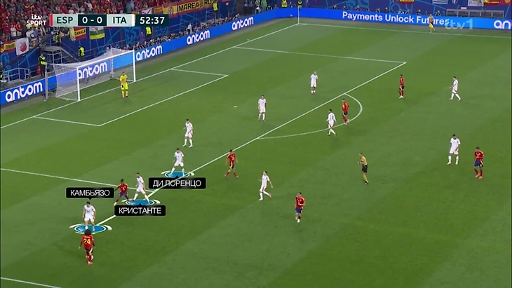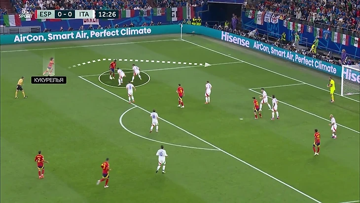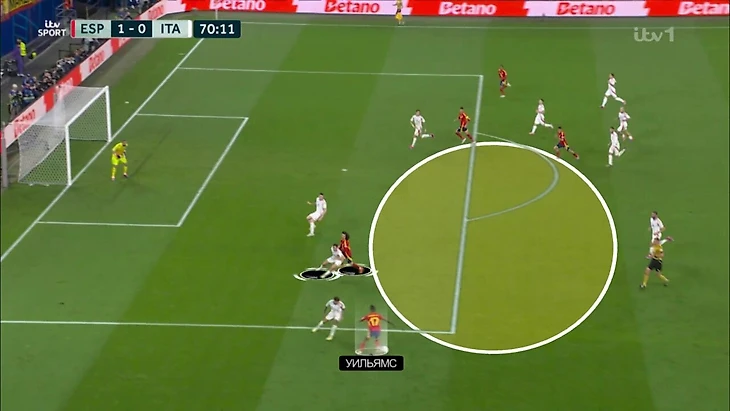 По-настоящему обезвредила этот фланг лишь замена Луиса де ла Фуэнте, который убрал Нико с поля на финальные минуты. Именно этот отрезок стал лучшим для Италии в ужасном матче – они пошли вперед, больше не опасаясь контратак (66% владения) и даже нанесли 2 удара (то есть половину от всех своих попыток).