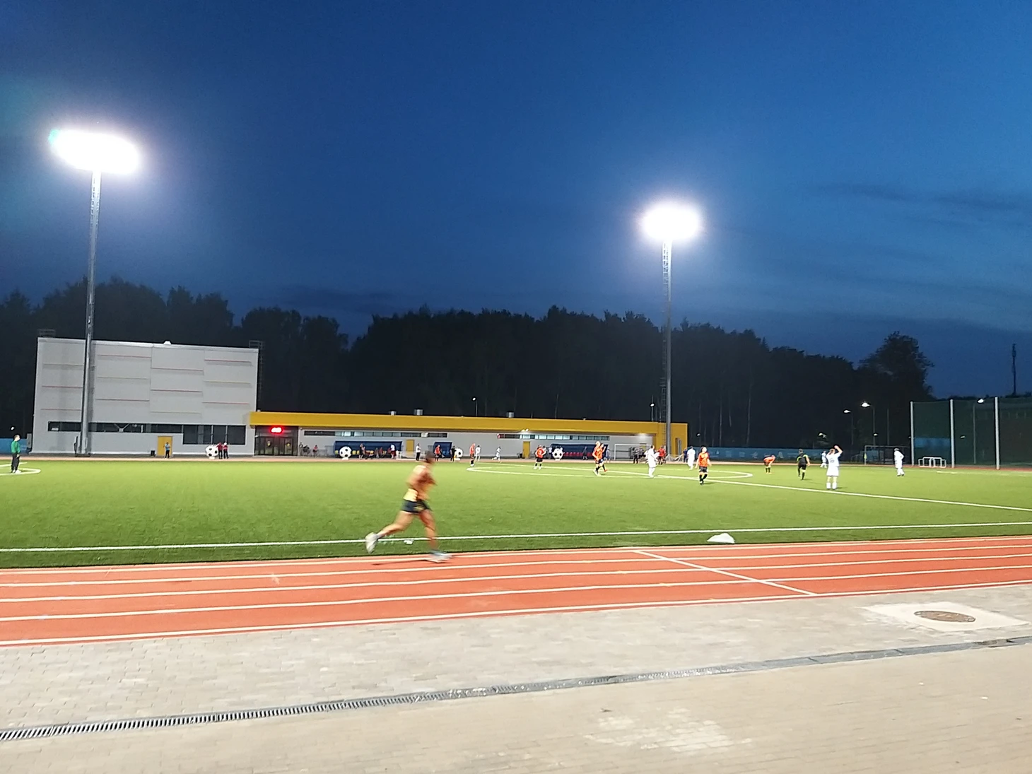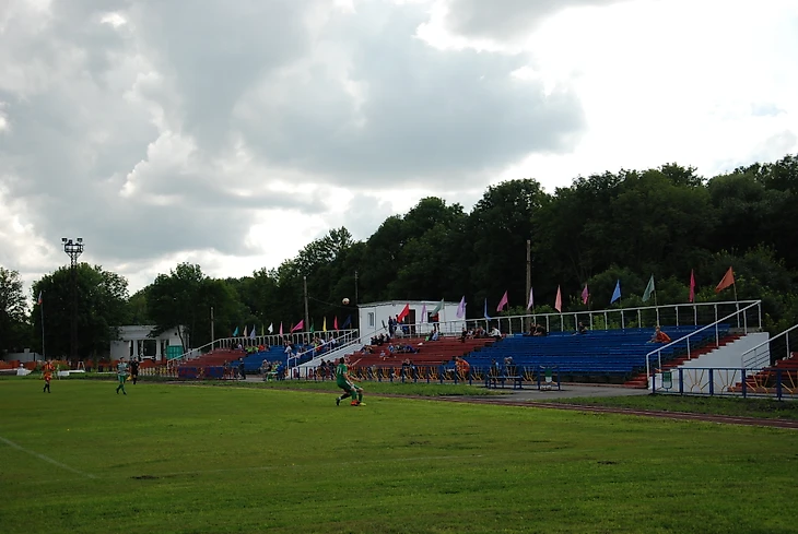 Стадион запомнился разве что тем, что располагается на отшибе, посреди леса. Приятное место. Обычный современный стадион с полноценными беговыми дорожками и удобной трибуной.