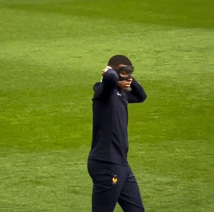 Мбаппе так и не вышел против Нидерландов, но показал маску. 4 фото с разминки