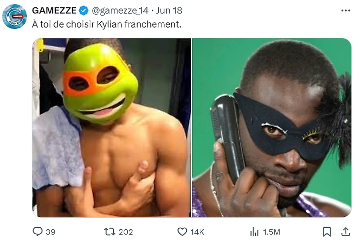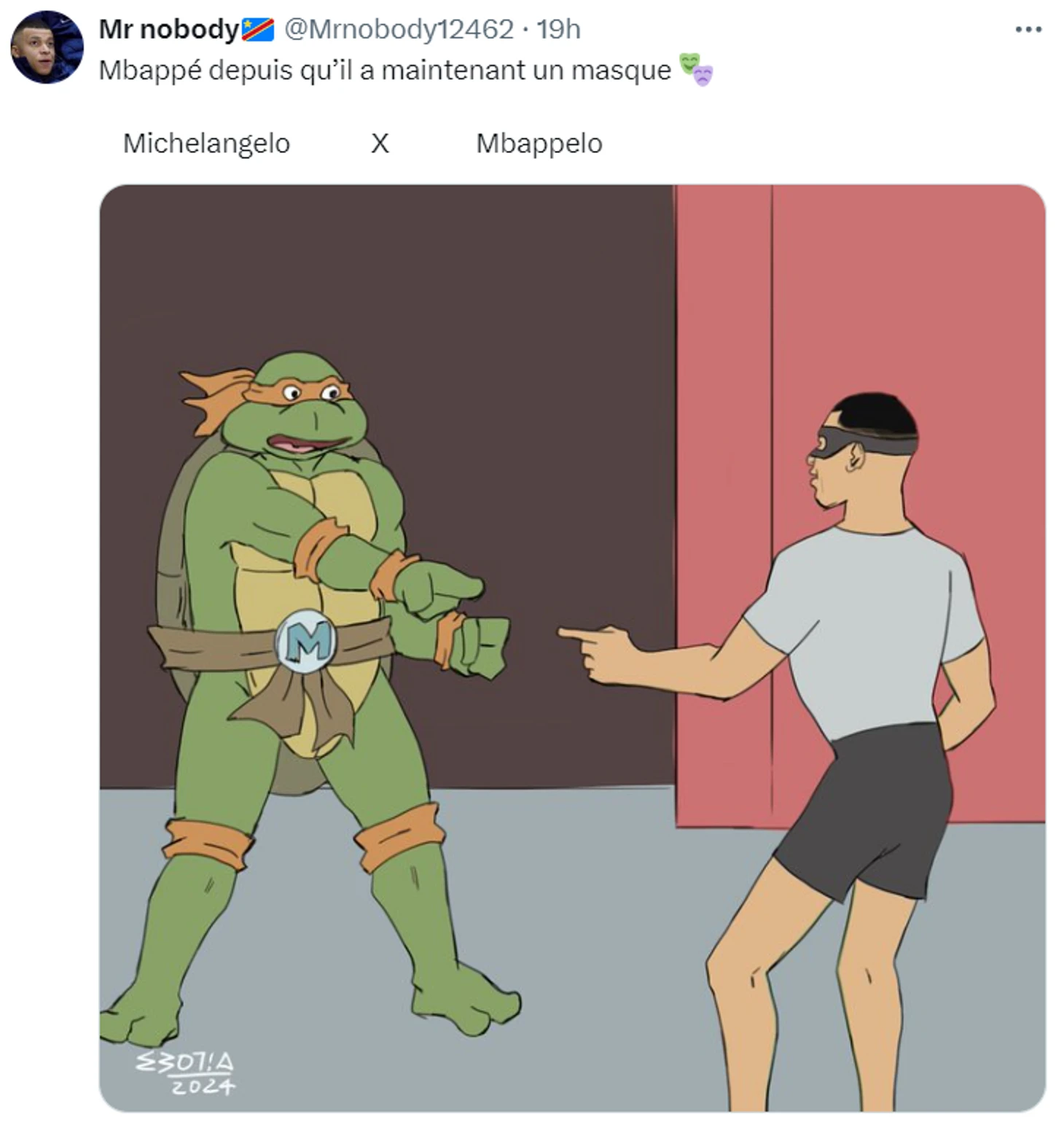 💭 «Мбаппе после того, как у него появилась маска. Микеланджело и Мбаппело».