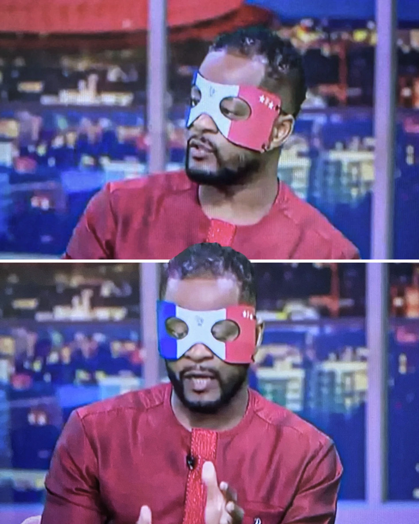 Флешмоб с масками поддержал Патрис Эвра. Экс-игрок «МЮ» анализировал матч Франции и Голландии в маске Мбаппе.