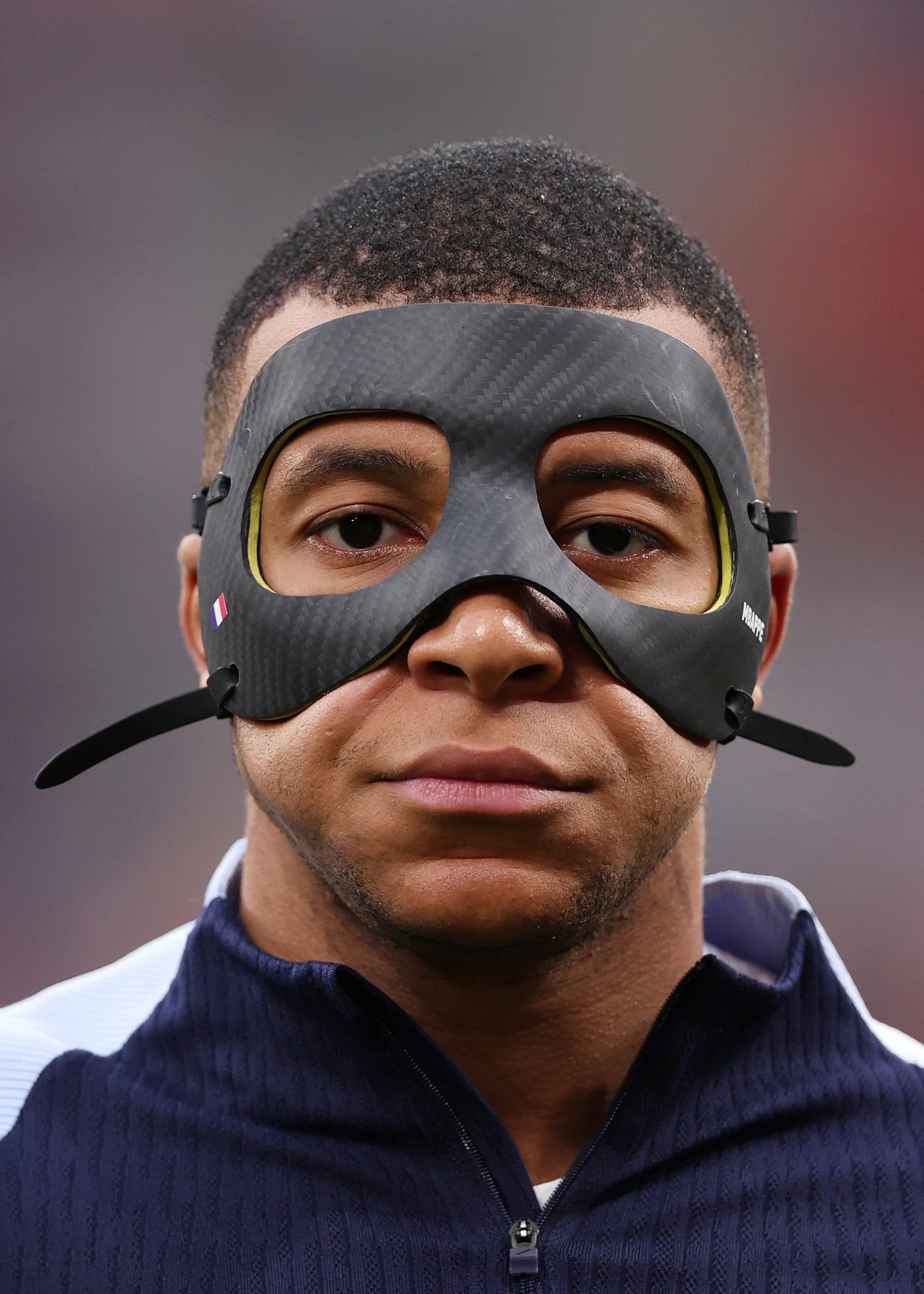 Даже в такой маске Килиан играть не смог бы. Согласно регламенту УЕФА, защитная маска футболиста должна быть однотонной. Француз в итоге остановился на классическом черном варианте.