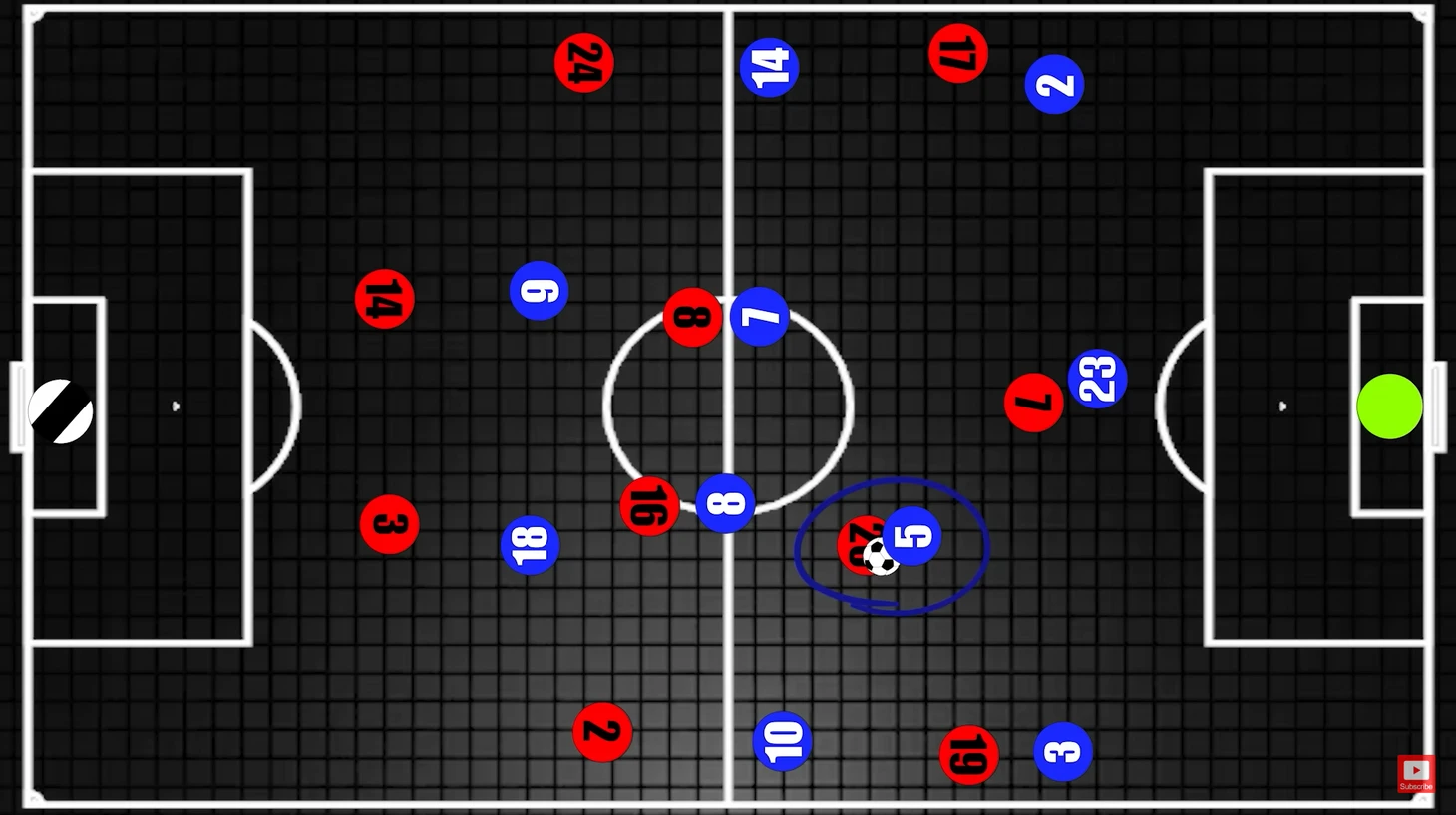 Итальянцы действовали в схожей манере - Жоржиньо постоянно выдвигался к Родри, а Барелла - в пару к Скамакке для опеки Ле Норманна и Лапорта. Из-за этого у итальянцев постоянно возникал -1 в центре поля.