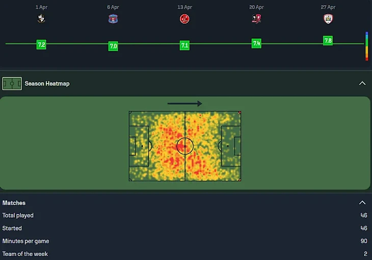 Он может отбирать мяч по всему полю и очень хорошо восстанавливаться в своей работоспособности на всех третях, а также способен с хорошей осознанностью и скоростью перехватывать пасы соперника, чтобы попасть одному на свободные мячи. Его универсальность на позиции центрального защитника, правого защитника и в полузащите – это то, что было бы чрезвычайно полезно иметь в Чемпионшипе.